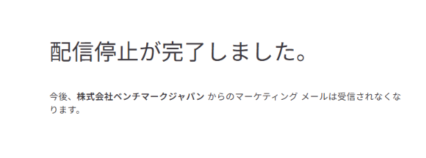 配信停止をクリックするとページが更新され、確認メッセージが表示されます。そのアドレスは今後の配信対象から除外されます。