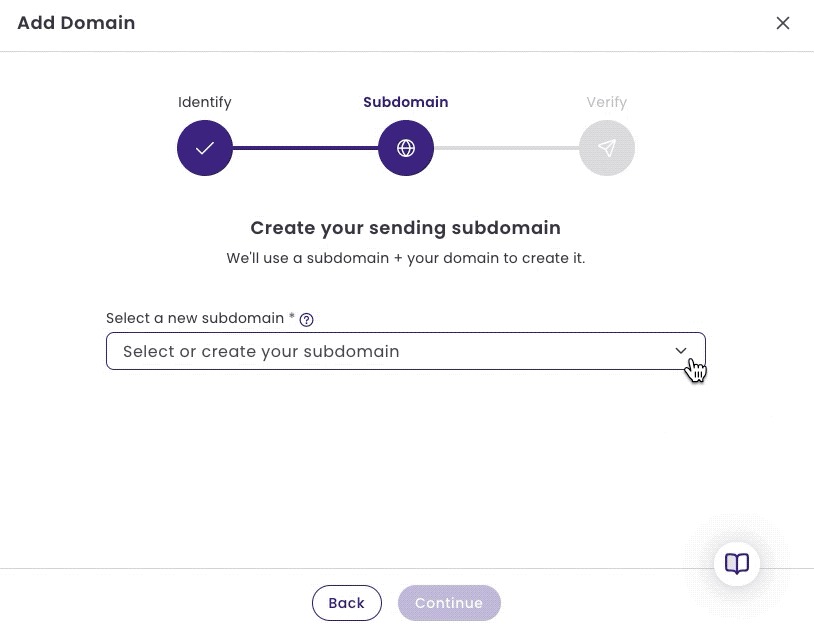 ドロップダウンから使用するドメインを選択するか、「新しいドメイン」 を作成してください。