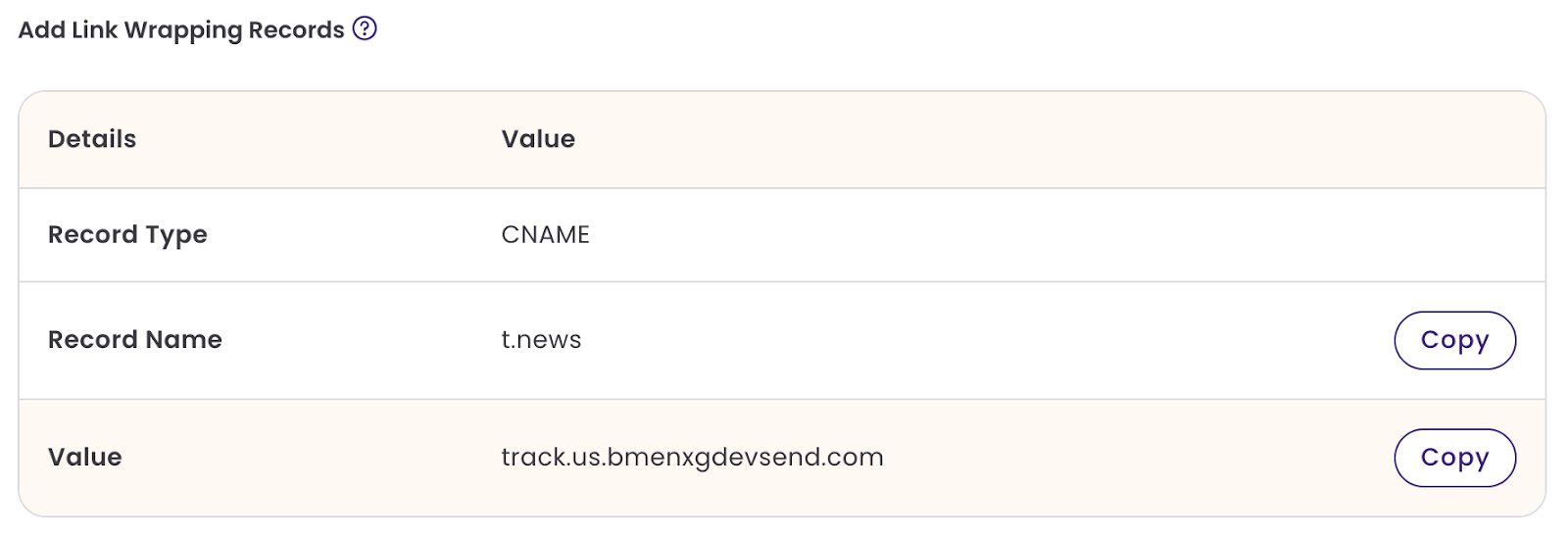 リンクラッピングは、CNAMEレコード単体 で設定します。
