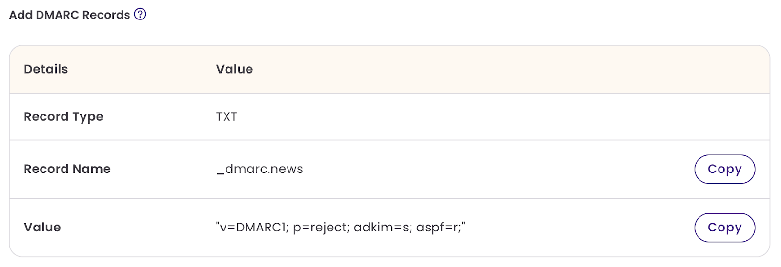 - 値: "v=DMARC1; p=reject; adkim=s; aspf=r;"