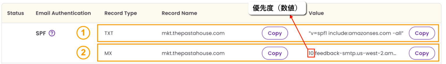 レコードは表示された順に追加することをおすすめします。1つでも欠けていると、ドメインが認証されません。