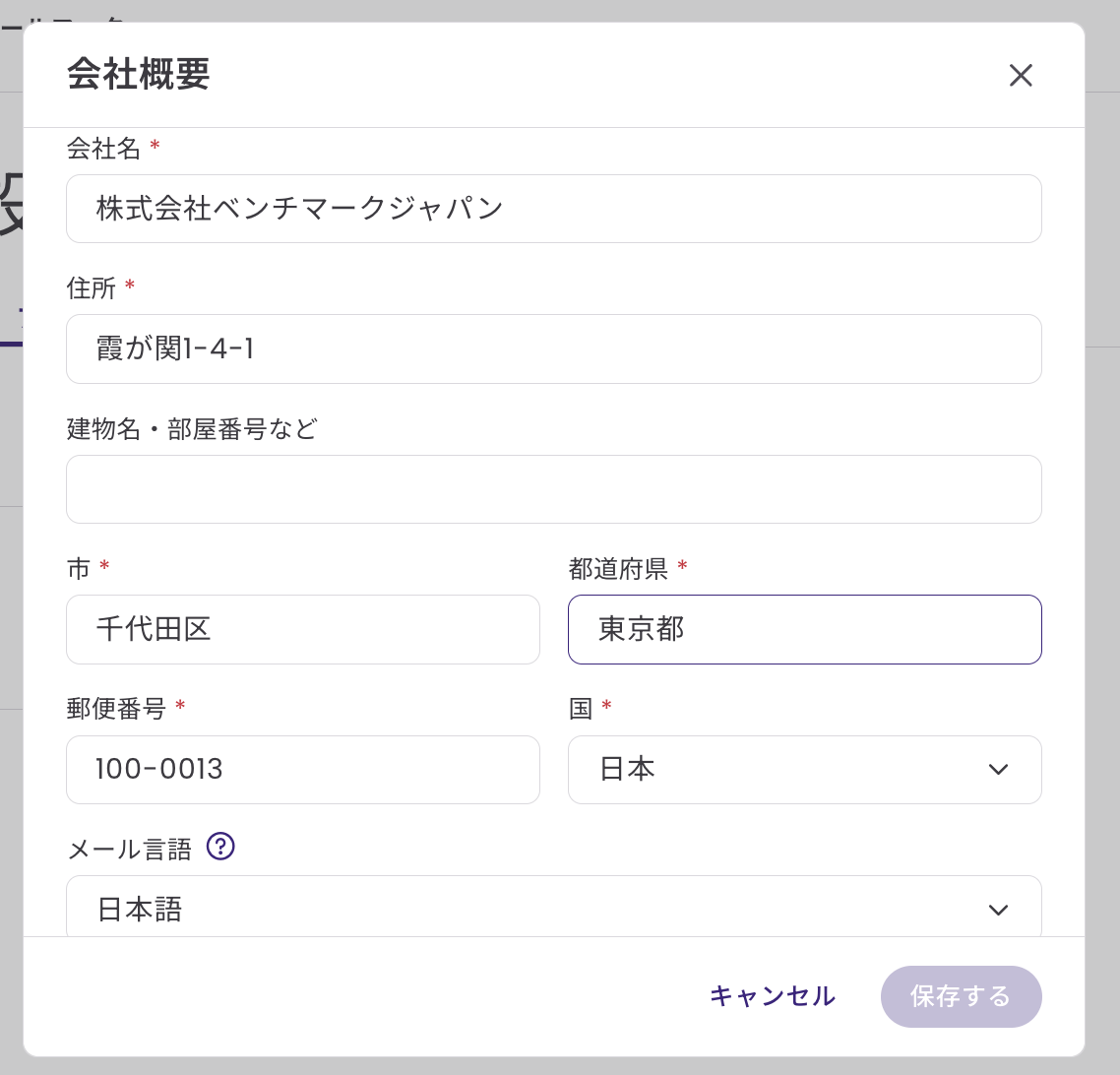 内容(住所やフッター言語)の変更は、このページでご案内している手順で可能です。