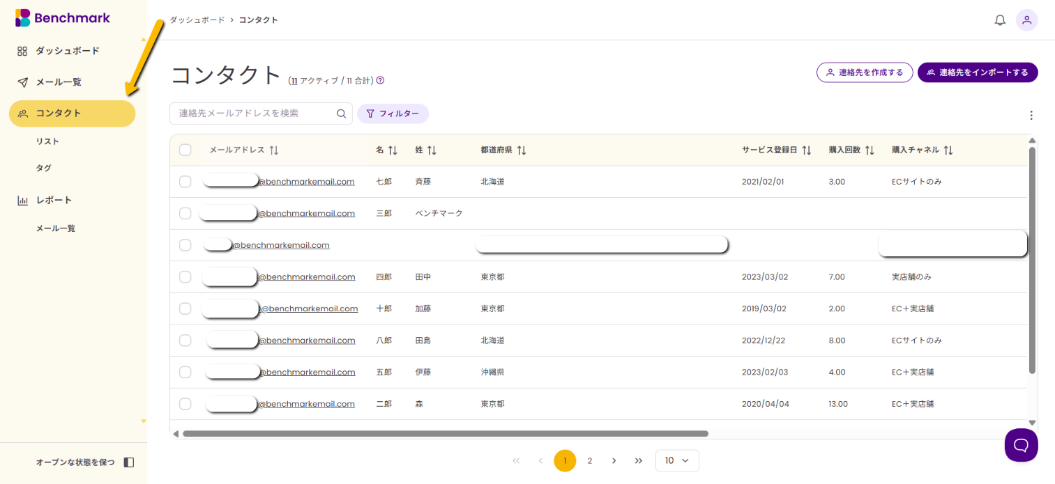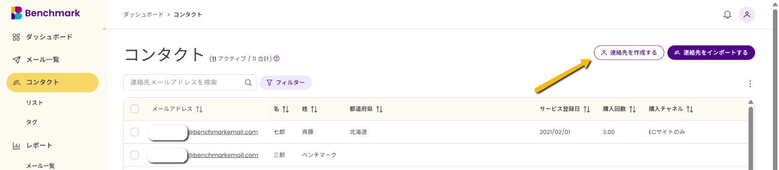 - Benchmark Emailには、顧客情報である「コンタクト」と、それらをメール配信または顧客管理のためにまとめた「リスト」の二つの概念がありますが、違いについて詳しく知りたい方はこちらの記事をご覧ください。
