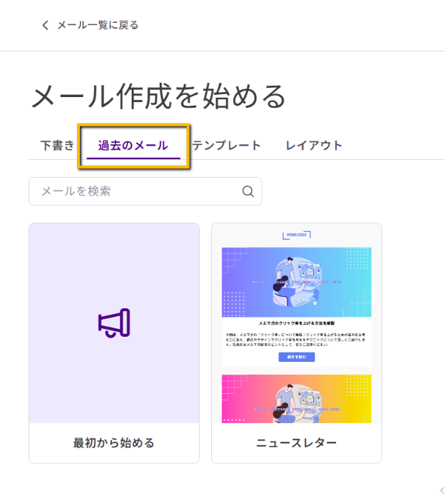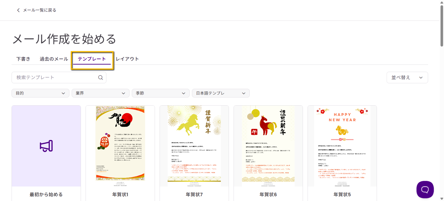 - 初めてメールを作成する場合、 「白紙から始める」または「テンプレート」の2つのオプションが表示されます。メール作成後、以下のオプションが表示されます。