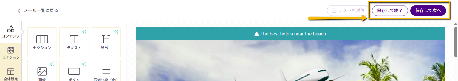 メールを送信する準備ができたら、「保存して次へ」をクリックします。