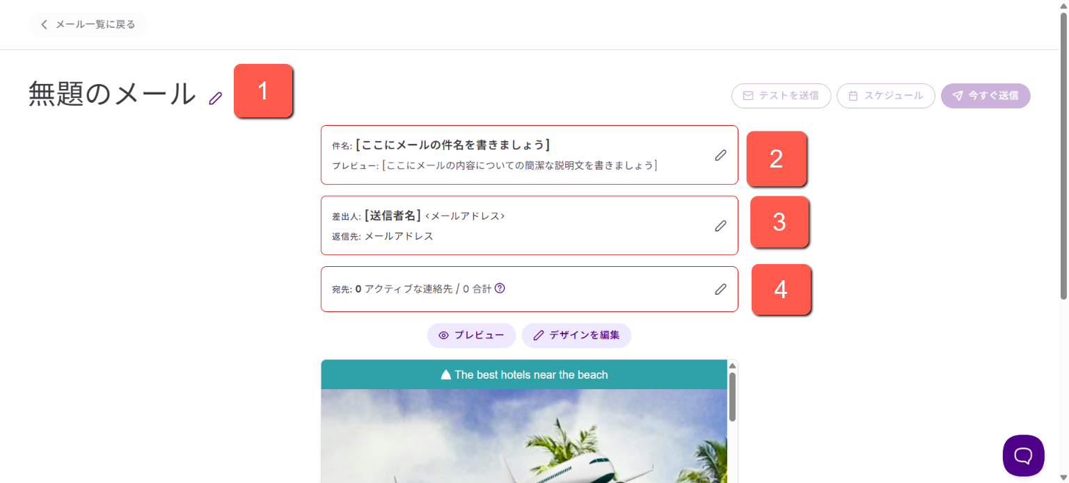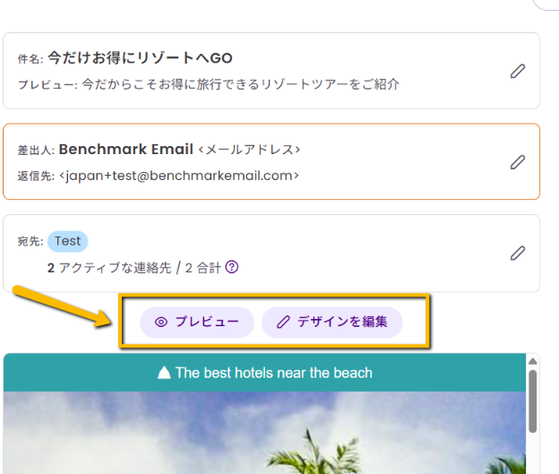 メールを「プレビュー」で確認し、期待通りの仕上がりになっていることを確認します。変更が必要な場合は、「デザインを編集」をクリックして最終的な仕上げを行ってください。