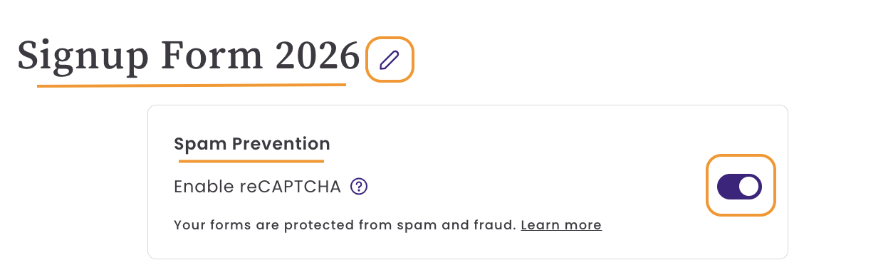 新しく作成した登録フォームではreCAPTCHA が初期設定で有効になっています。