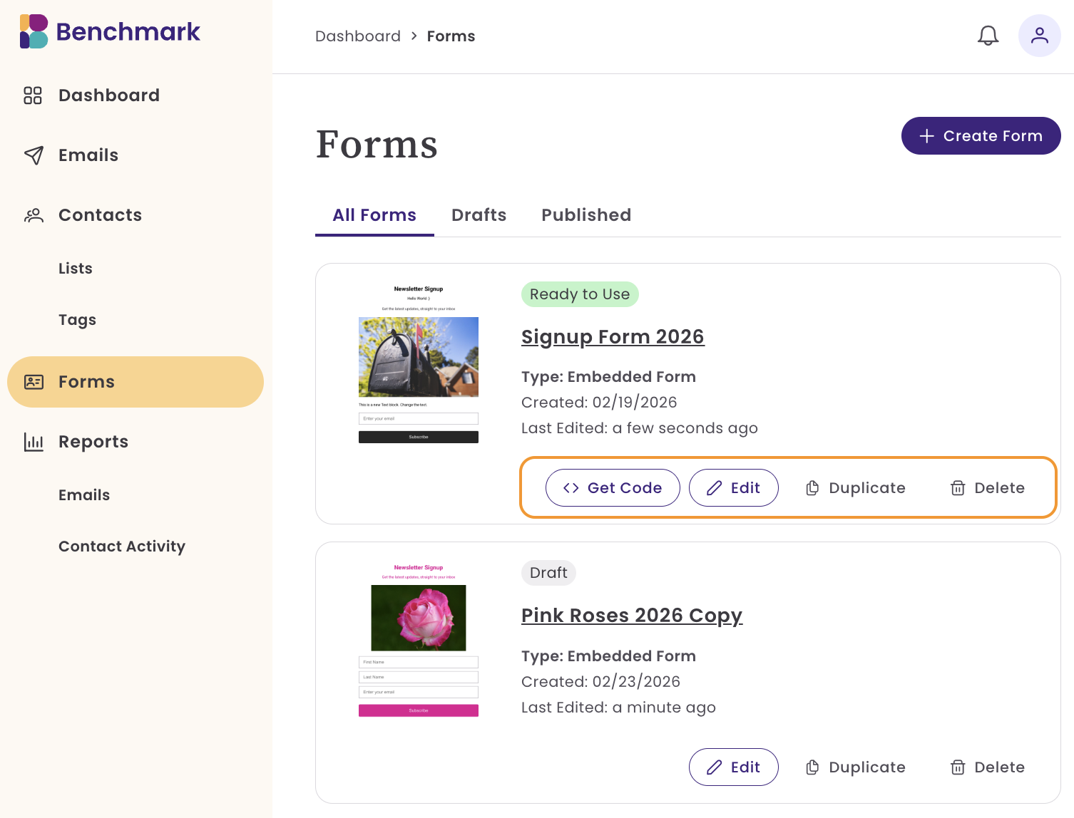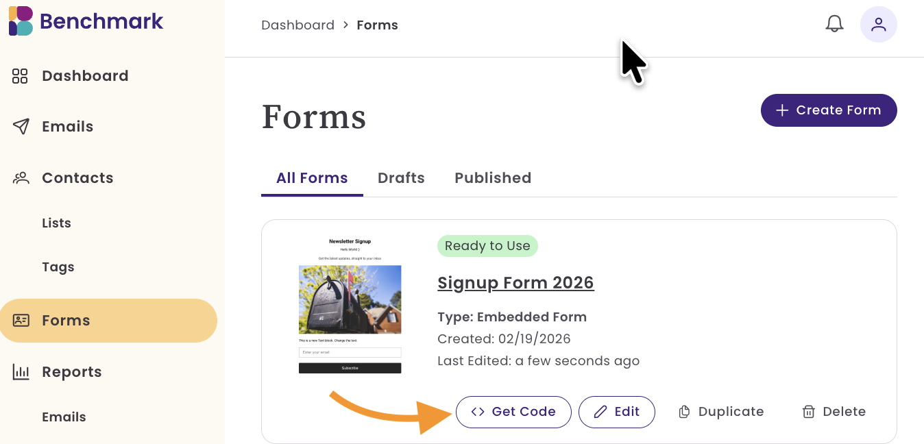 Benchmark Emailの登録フォームを使ってウェブサイト上で新しい登録者を直接集めることができます。