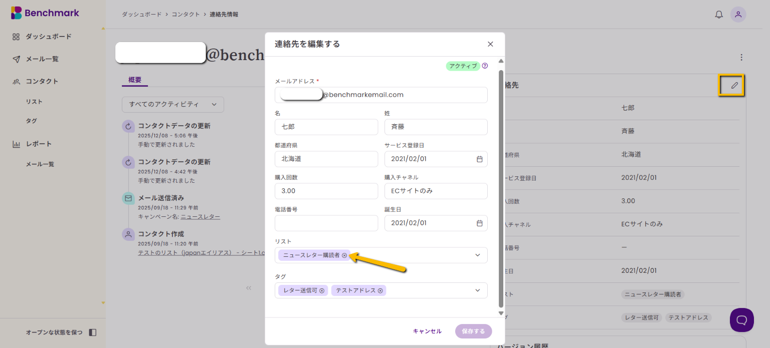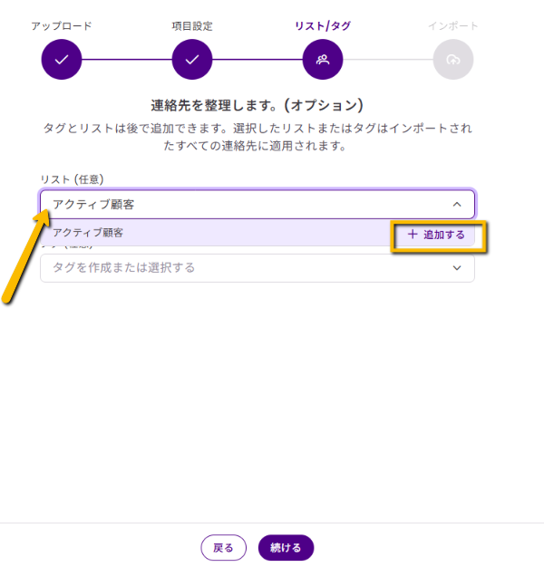 新しいコンタクトはコンタクト一覧に追加され、新しいリストはリスト一覧に表示されます。連絡先の数によっては、ファイルのインポートが完了するまで最大10分ほどかかる場合があります。