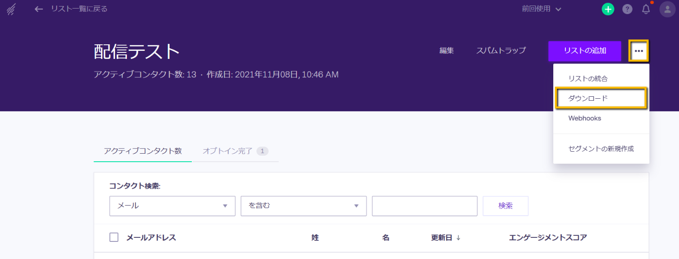 - コンタクトリスト一覧を開き、エクスポートしたいリストへアクセスします。