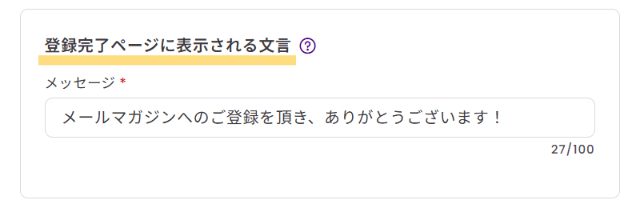 このメッセージはフォームの送信完了後に購読者へ表示されます。