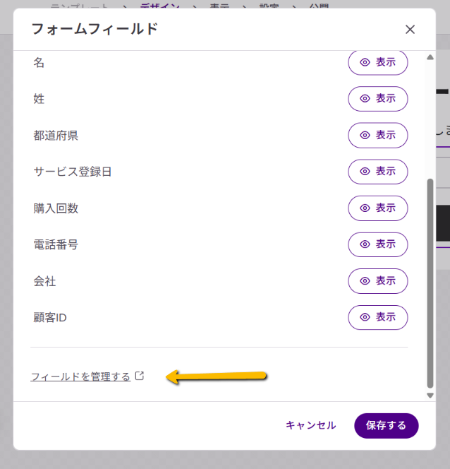 フィールドを管理するをクリックします。