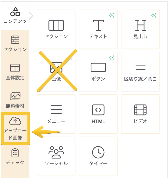 「アップロード画像」セクションは「画像ブロック」とは別の機能であり、画像を挿入する前にコンテンツブロックを追加する必要はありません。画像を挿入すると、自動的に画像ブロックのスタイル設定オプションが利用可能になります。