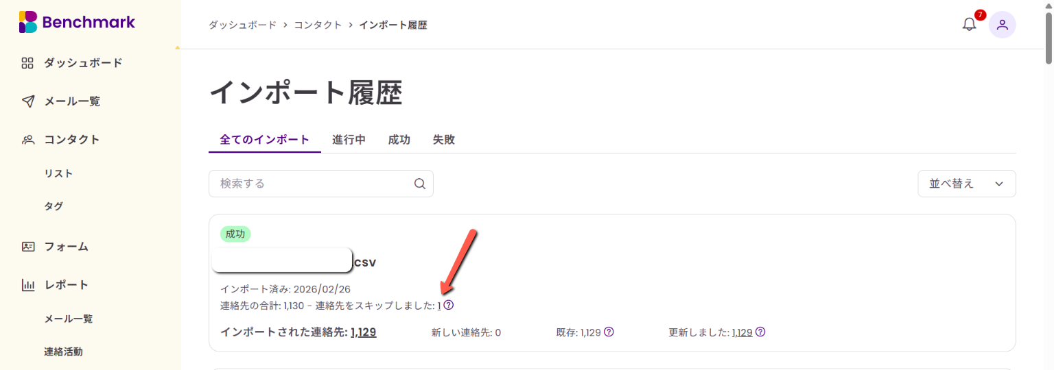同じ内容はコンタクトリストのインポート履歴からも確認可能です。